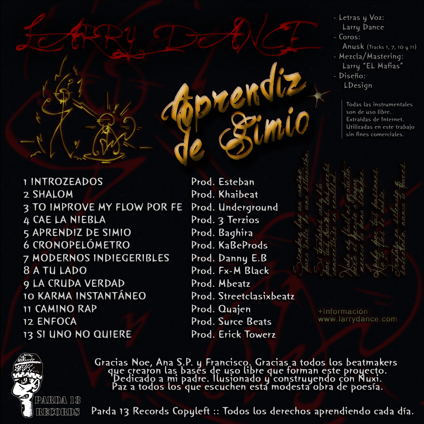 Las bases intrumentales de uso libre fueron extraídas de Internet, de beatmakers de todo el mundo.
