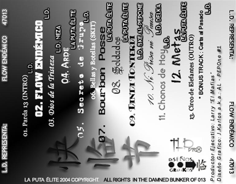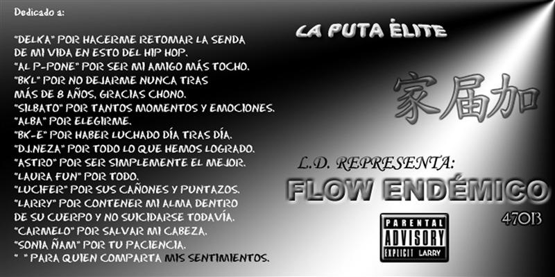 El disco se titula “L.D. representa Flow Endémico 47.013” y, pese a que muchos lo intenten considerar propio de La Puta Élite, el álbum es un trabajo de Larry Dance, con la colaboración de la banda La Puta Élite, cuyos integrantes se reunificaron y sumaron al proyecto en sus últimos 4 meses de edición, cuando ya había pasado un año de trabajo de Larry sin ellos. Apareció el nombre de la banda en la portada porque, evidentemente, era la banda de la que Larry formaba parte desde que la fundase en 1999.