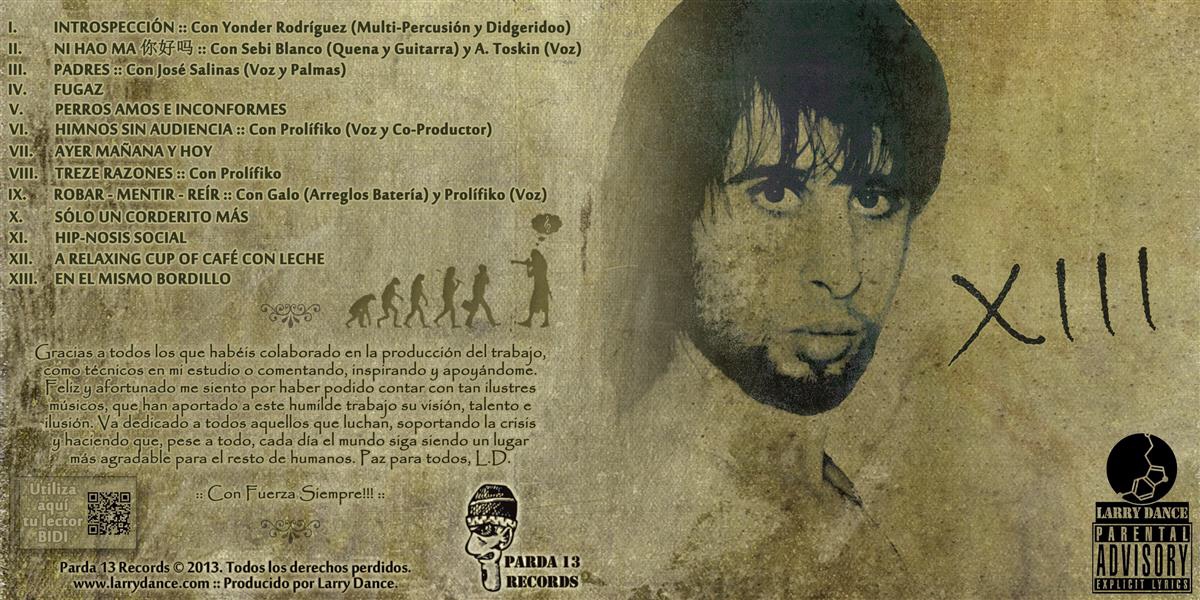2013 fue un año especial para Larry Dance porque el número lleva en su terminación el final del código de su barrio “Las Delicias” en Valladolid: 47.013. Se darían varios factores especiales, llevaba 12 LPs publicados, por lo fue el LP nº 13 de su carrera musical. De ahí viene su título escrito en números romanos: “XIII” (13 en caracteres árabes). El disco cuenta con 13 temas, que fueron mostrados el día 13 de cada mes a las 0.13h en el canal oficial de soundcloud.com. Se publicaron 12 temas mensuales y un bonus track para sumar los 13 temas previstos.